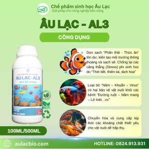 Giới thiệu CHẾ PHẨM SINH HỌC ÂU LẠC – AL3 (Dòng chuyên biệt cho Cá Cảnh) – Giải pháp kiến tạo môi trường nước trong vắt, sạch khuẩn nhờ công nghệ vi sinh MBAL tiên tiến.